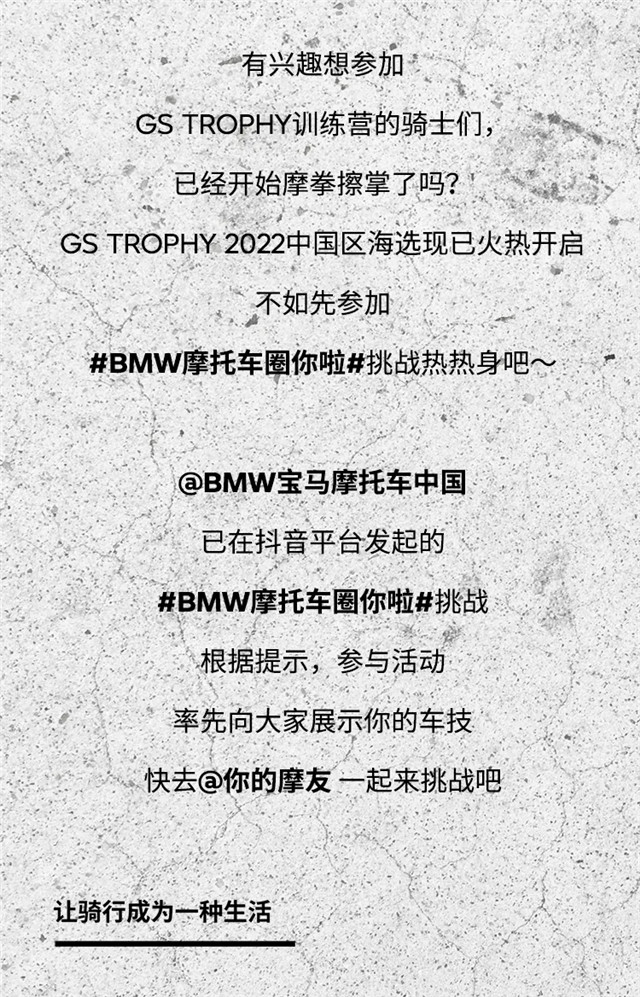 回復(fù):寶馬GS Trophy 2022中國區(qū)選拔營現(xiàn)已火熱開戰(zhàn)