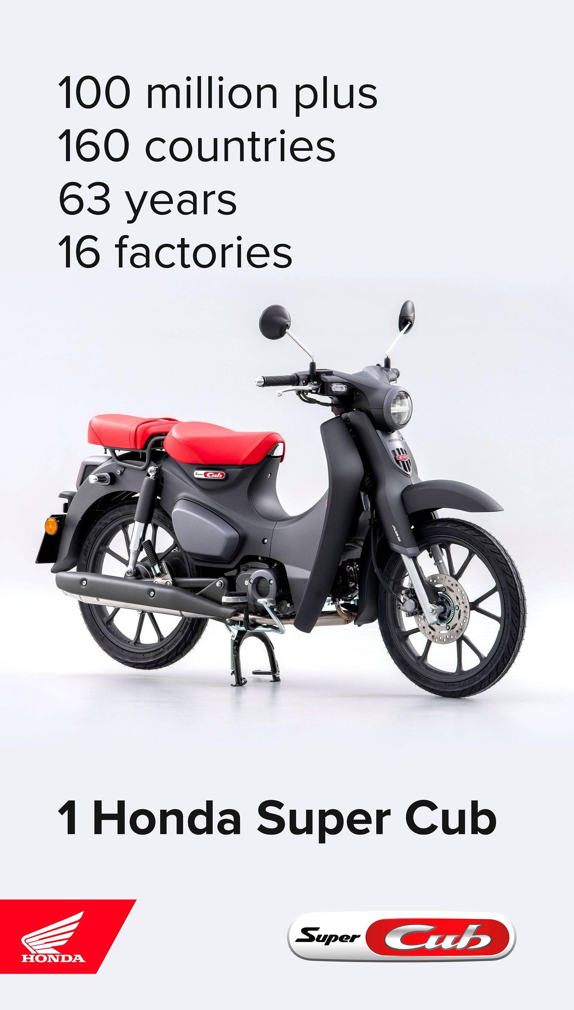 Honda 的 Super Cub “ 超級幼獸 ” 車系有著非常悠久的歷史,而第一款以 “ 幼獸 ” 命名的車型在 1958 年八月份誕生 —— Super Cub C100。經(jīng)過了近六十年之后的 2017 年,第一億輛 Super Cub 下線,奠定了它作為世界上有史以來最受歡迎之摩托車的地位。
