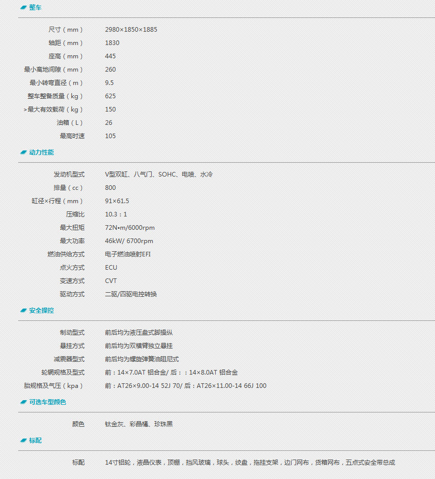 春风ATV全地形越野RCFORCE 800QX8Q?参数规格