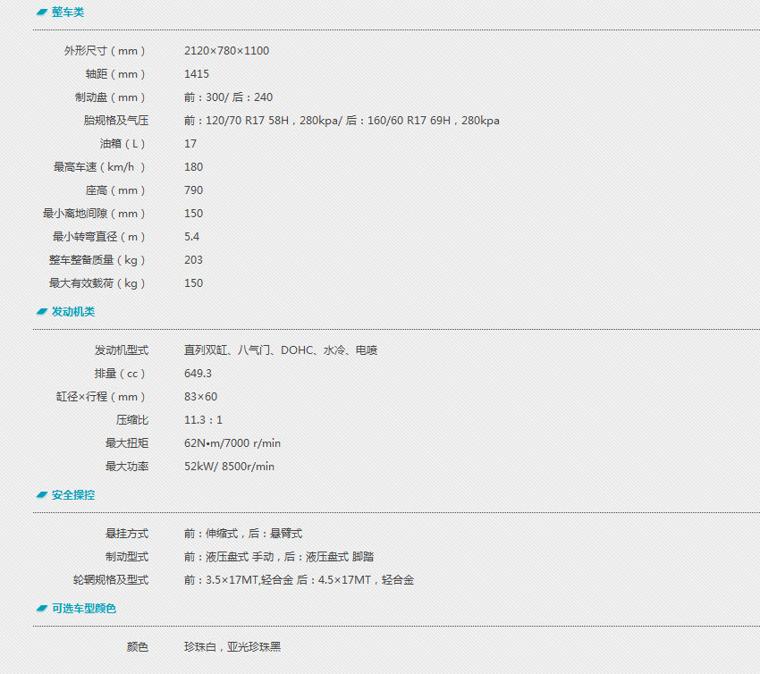 人机工程学理念,拥有649.3cc排量同车最佳的车n前后配重。换装全CA表,新增旉和小里程功能Q?/p>