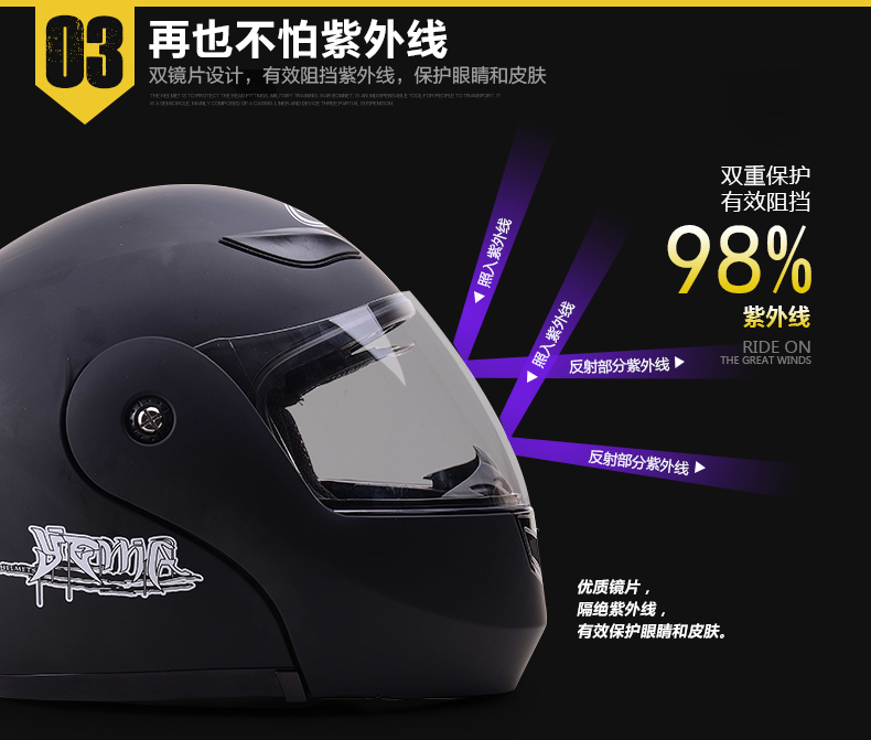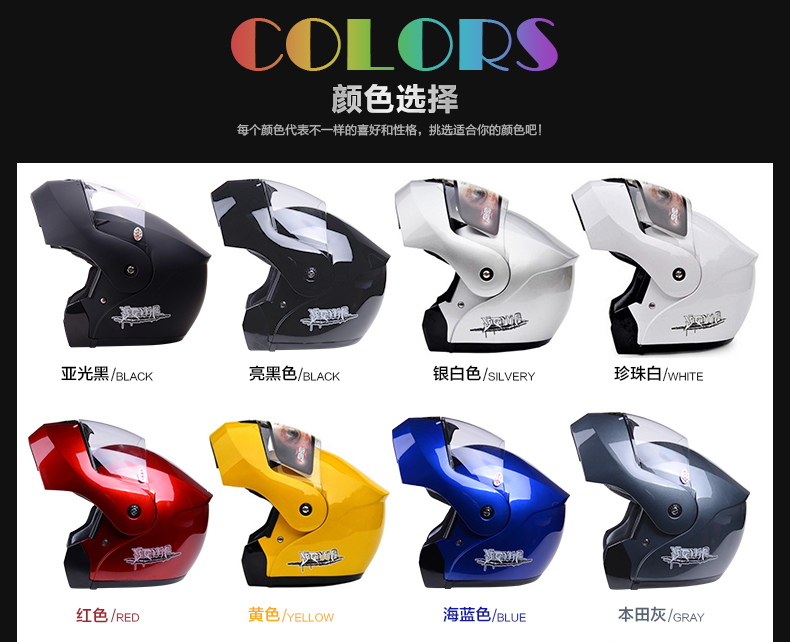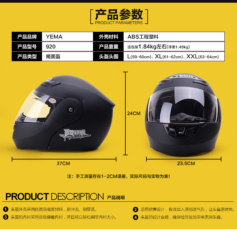 頭盔默認(rèn)配原裝透明鏡片,需要換防霧的請(qǐng)補(bǔ)上差價(jià),寶貝詳情有補(bǔ)差價(jià)鏈接哦!~!頭圍范圍:L號(hào)適合57-59厘米;XL號(hào)適合60-62厘米;XXL號(hào)適合63-64厘米。內(nèi)襯全拆洗,下雨天不怕漏水。我們送的防護(hù)面罩就是當(dāng)圍脖使用冬季帶不怕凍脖子。(單鏡片單色128元,單鏡片花色138元)