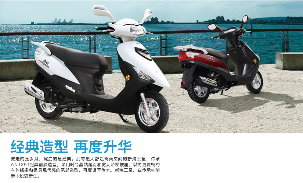 流走的是歲月,沉淀的是經(jīng)典。擁有超大舒適駕乘空間的新海王星,傳承AN125T經(jīng)典前臉造型,采用時尚晶鉆尾燈和寬大階梯鞍座,以簡潔流暢的車體線條和極具現(xiàn)代感的尾部造型,再度譜寫傳奇。新海王星,在傳承與創(chuàng)新中蛻變新生。