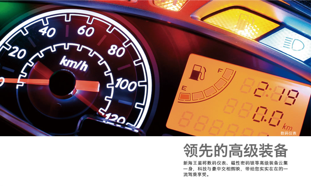 新海王星將數(shù)碼儀表、磁性密碼鎖等高級裝備云集一身,科技與豪華交相輝映,帶給您實實在在的一流駕乘享受。
