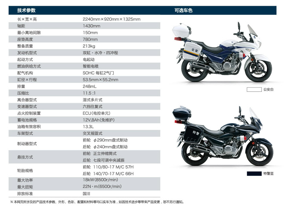 豪爵鈴木驪馳GW250J-H警用摩托車