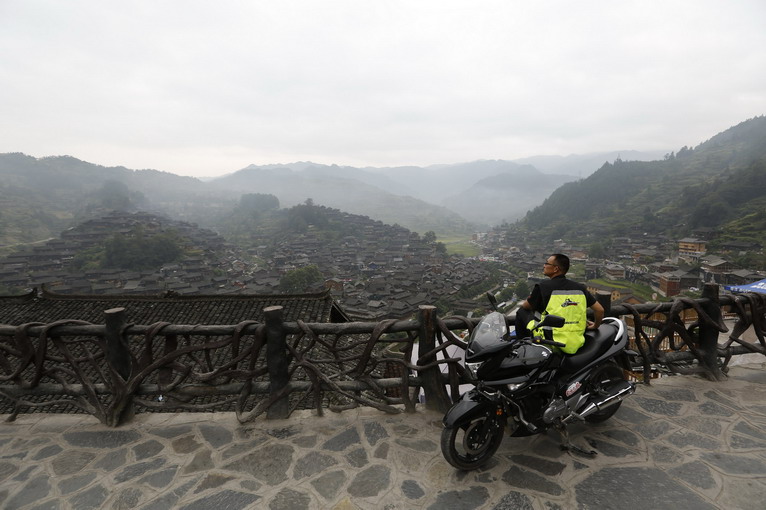 核心提示:9月4日,DAY20:西江苗寨至貴陽 誤闖禁摩區(qū),目前車隊已行走3450公里。在離開神奇的西江千戶苗寨前,隊員陳晨決定前往觀景臺,一