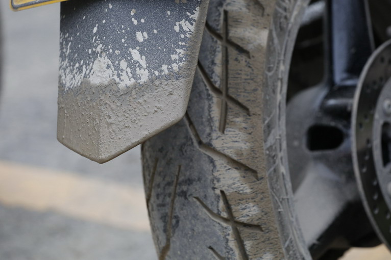 穿過最后一片泥路,車隊成員和GW250都已經(jīng)布滿塵土。