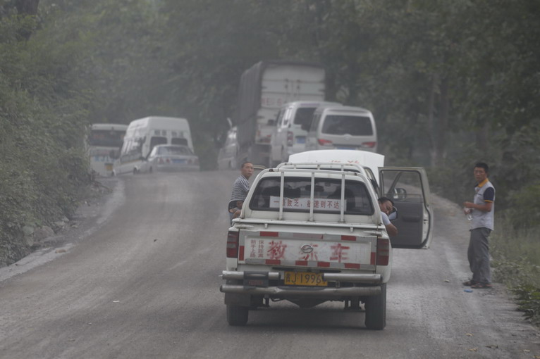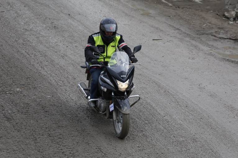 早上在省道的輕松過后,下午在G210國道開始了今天的修路之旅,本來狹窄的國道,被封閉起了一半車道整修,剩下的一半,也布滿泥漿和碎石,隊員不得不拉大車距,防止受到前車的粉塵和碎石影響。