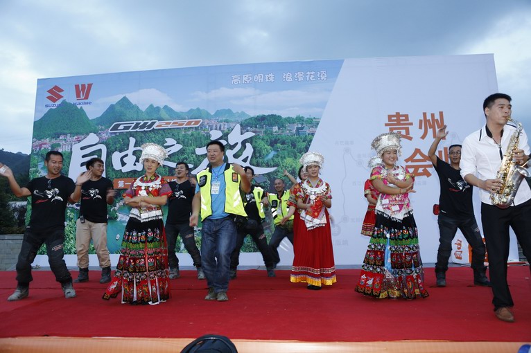 透露個小細節(jié),臺上的兩臺GW250F都是自由之旅車隊從上海騎行3000多公里來到貴州的車輛。