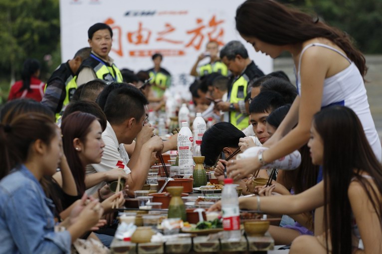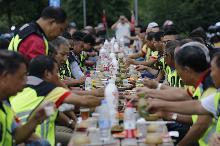 幾百名車友,只用兩張長桌就可以開席了,這樣的長桌宴你見過沒有?