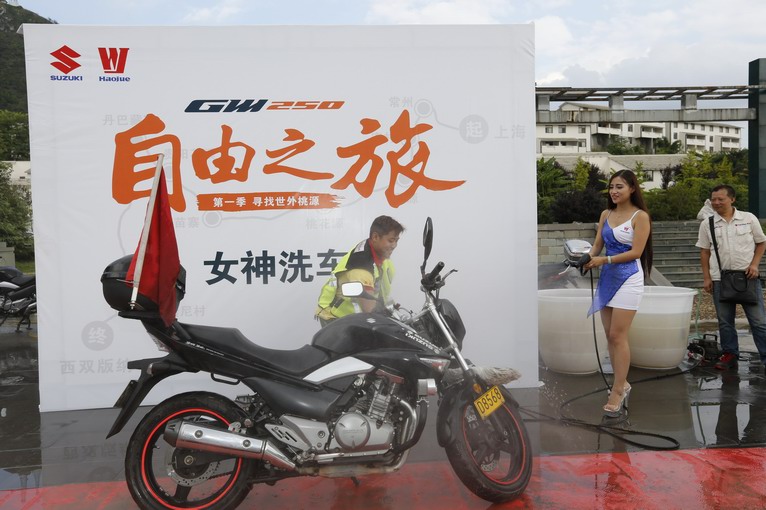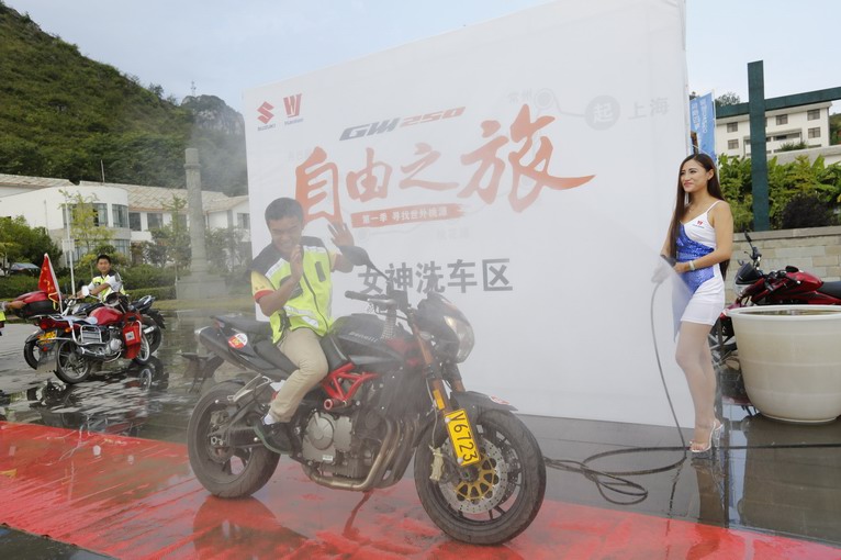 GW250F和靚麗車模登場,兩位騎手充當臨時男模。