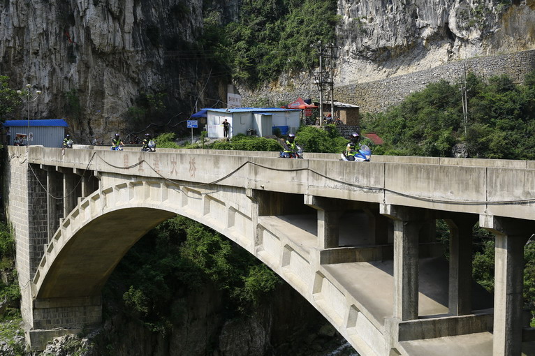 紅軍“四渡赤水”的故事,也是在這里發(fā)生。赤水河河谷狹窄,河面也不算寬,兩岸密布懸崖峭壁。自由之旅騎士也開上GW250F,從窄橋上橫越赤水,攀上懸崖陡坡,體驗當(dāng)年紅軍之勇。