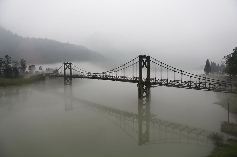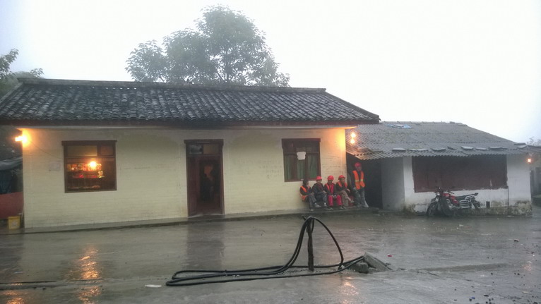 臨近傍晚,雨還在下,車隊依舊只能在路上緩慢龜行,心情像外面的天空一樣陰沉。突然發(fā)現(xiàn)山腰旁有一間小屋子,昏黃的燈光讓人覺得暖暖的。它應該是修路的工人臨時住的房子,說是臨時,其實住的時間絕對不短,這一條路修下來,估計也得好幾年功夫。好幾年,一路漂泊,我們眼中的美景,抵不過他們心中的鄉(xiāng)愁。