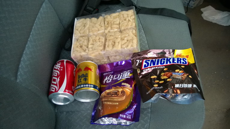 今天的路程很長,路況復雜,伴隨著高海拔、高溫差天氣,為了不耽誤趕路,大家準備了不少高糖分的應急食品。