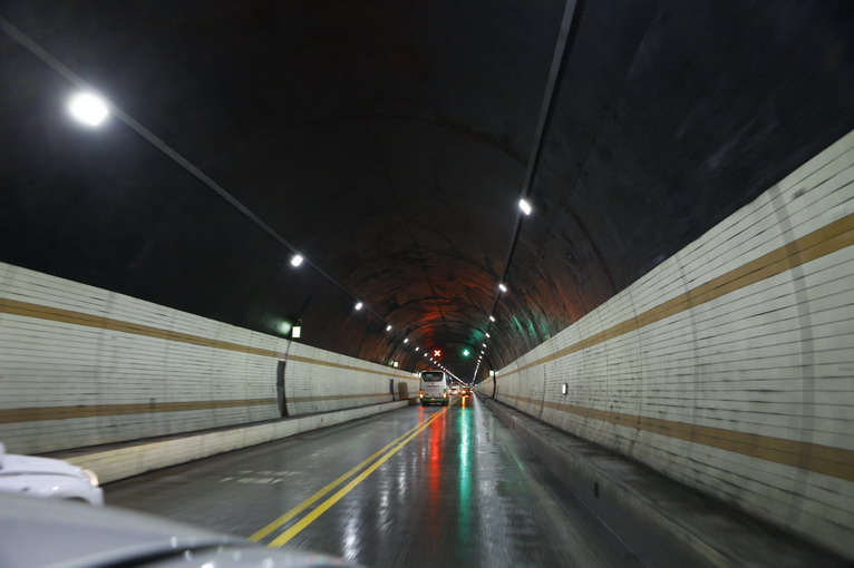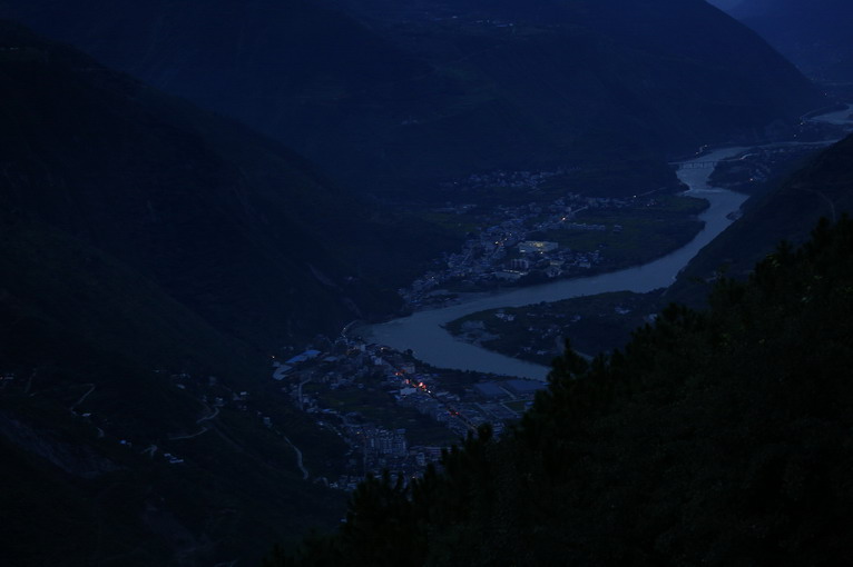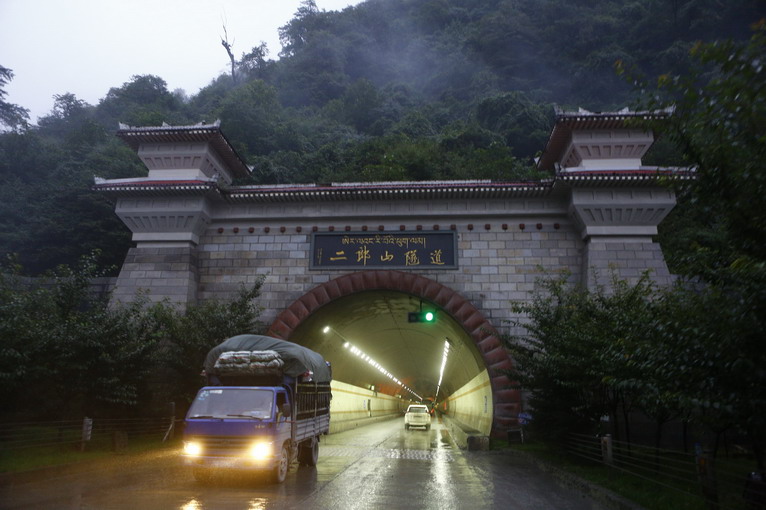 晚上7點15分,才剛到二郎山隧道,不過之前堵車的日子已宣告結(jié)束,可以放開跑了。二郎山就像是條時光隧道,那頭已經(jīng)天黑,還在下雨;這邊四周清透,清涼干燥。如此奇觀,整日的擁堵也似冥冥中的天意,只怪它太過美麗。站在觀景臺,空氣中透著絲絲涼意,遠眺夜幕下的大渡河,分外寧靜,踏上318的第一天,感覺很好的。