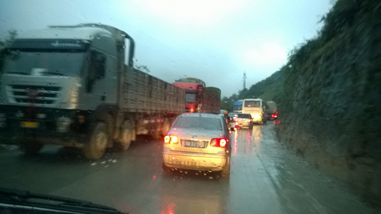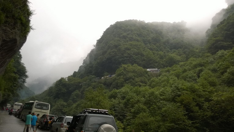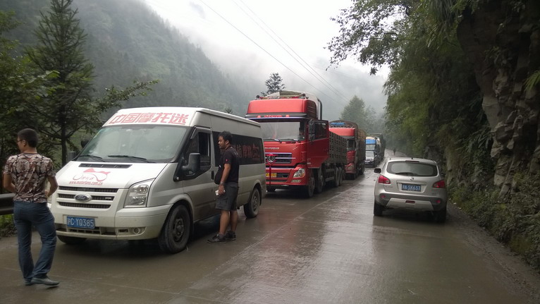 期待已久的川藏318就這樣開始:一直堵,一直堵,一直一直堵,6個多小時,才跑了40多公里,想到后面有那么多美景在等著,心里實在著急!天空下起了雨,后面的路將會更加艱難。中午吃飯的時候,大家趕緊抓緊時間休息,等待路通的消息,此刻,距丹巴還有400公里。