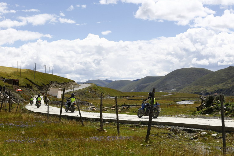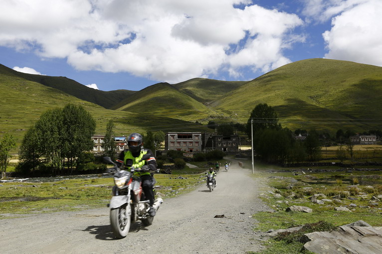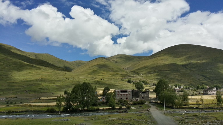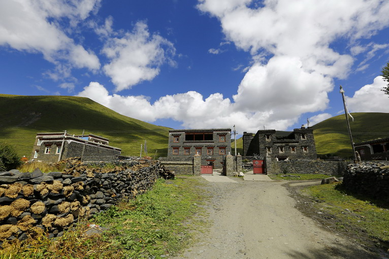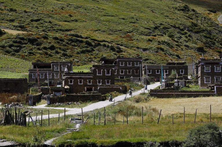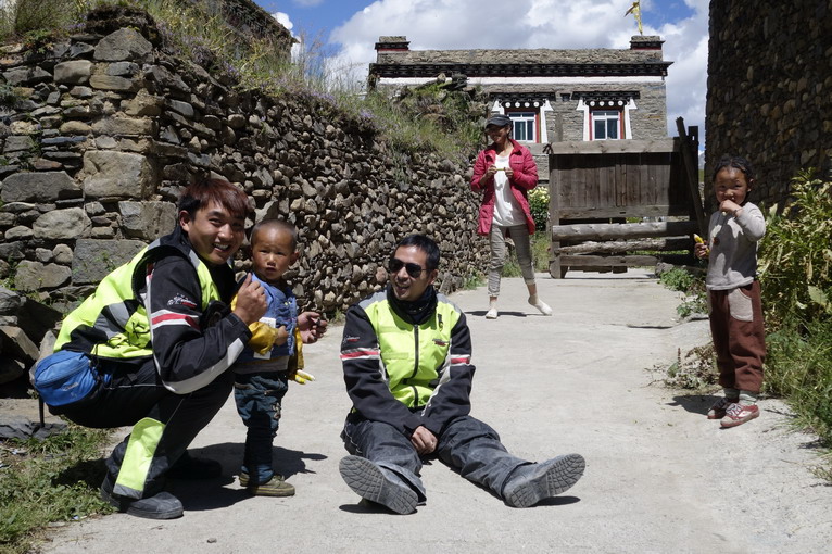 起初,只是車隊(duì)在藏民家門前的草地歇腳,遠(yuǎn)方漂亮的藏族建筑,吸引好奇的隊(duì)員們一探究竟。