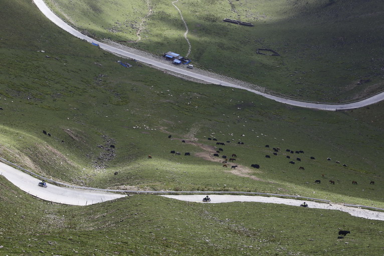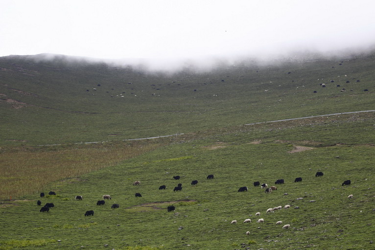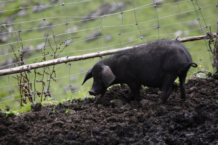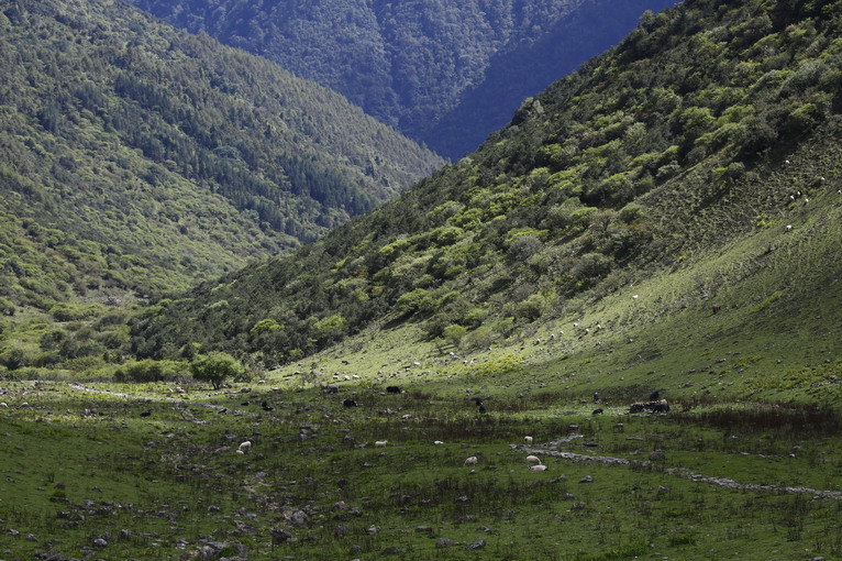 夾金山坡上,高原的純凈草料喂養(yǎng)著牦牛、藏豬、山羊。