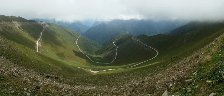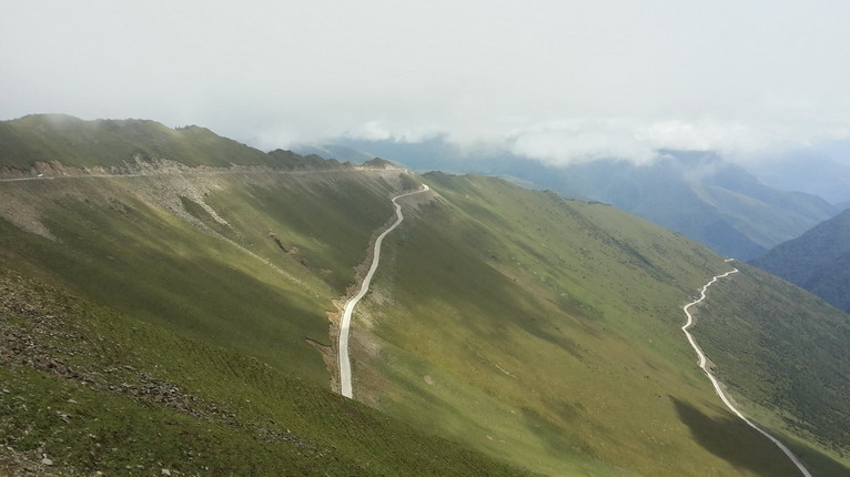 今日到達(dá)夾金山,也是云霧繚繞,能見度50米以下,車隊(duì)必須在這樣的環(huán)境中,從夾金山南坡下山。
