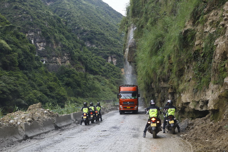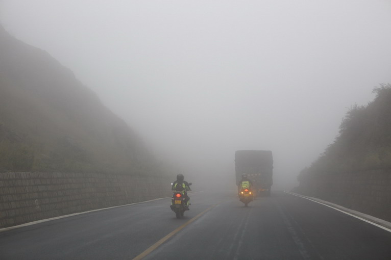 云南的天氣說變就變,云南的公路也是出名的難走,今天300公里不到的路程,隊(duì)員們嘗到了冷暖更替,泥漿亂石,積水隧道,濃霧天氣,甚至還有瀑布襲擊。