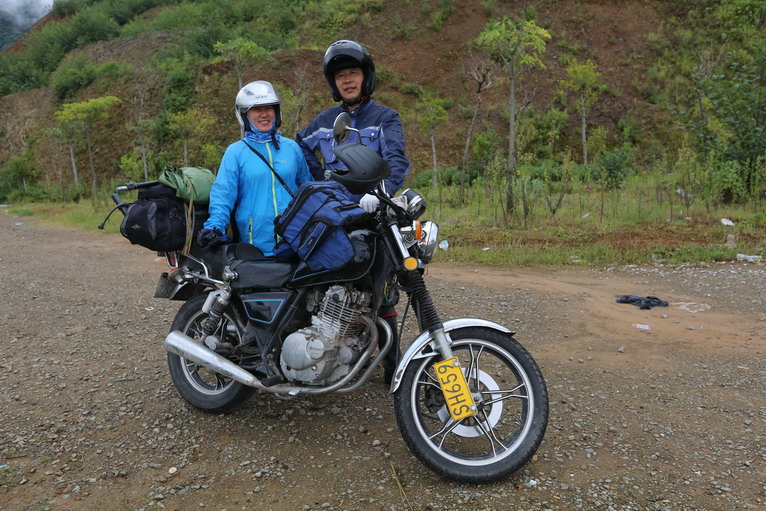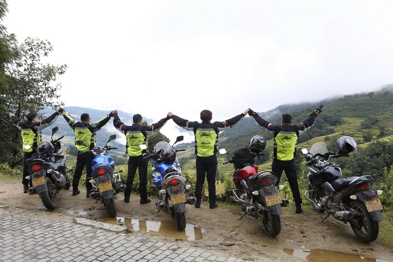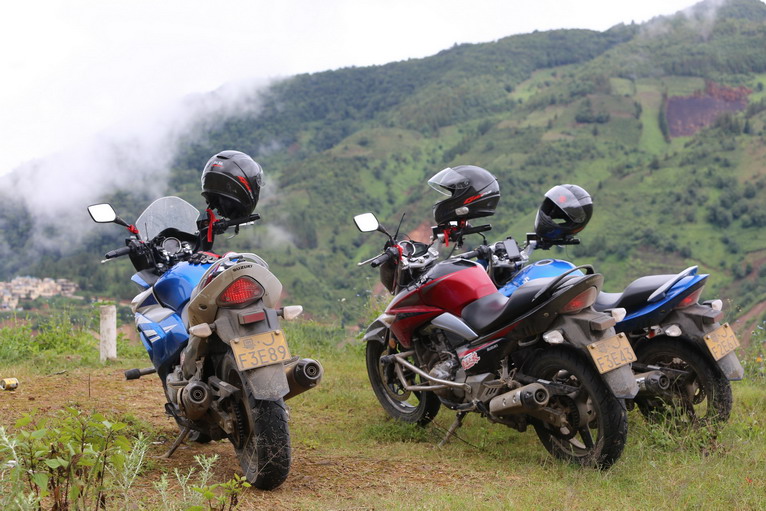 上午,隊(duì)伍剛離開住處,到達(dá)一個(gè)梯田觀景臺(tái)時(shí),遇到了一對(duì)來自湖北的夫婦,他們正是騎著摩托進(jìn)藏,開始他們的“自由之旅”。