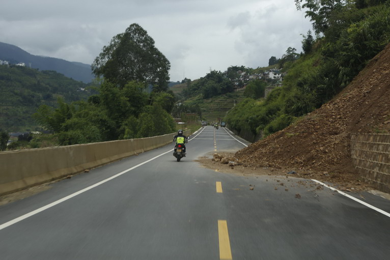 從元陽到江城縣,滿滿300公里全程山路,隊(duì)員們真實(shí)體驗(yàn)了一把云南隊(duì)員蔡易辰所說的,直路不會(huì)超過50米的全彎道狀態(tài),各種路況也不斷呈現(xiàn)。