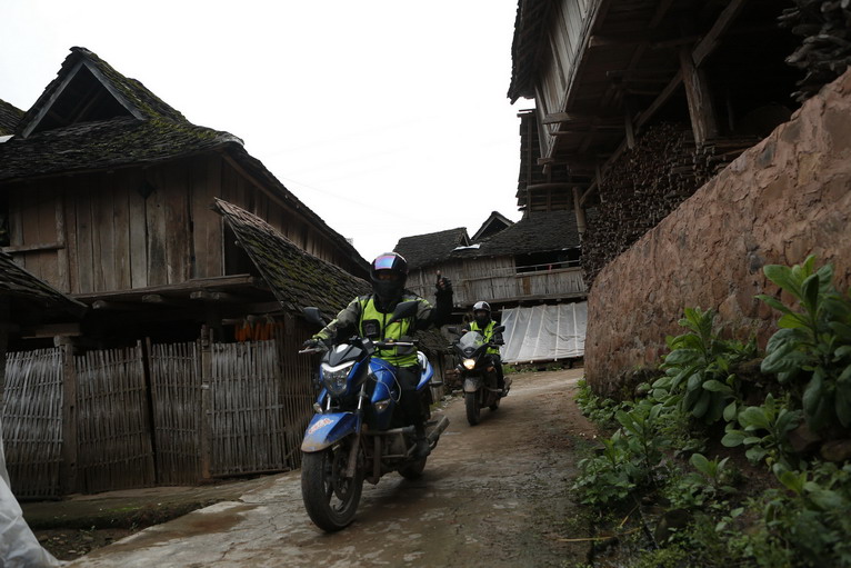 車隊(duì)的技術(shù)人員為兩位摩友檢查愛車,并和騎手們一起合照。