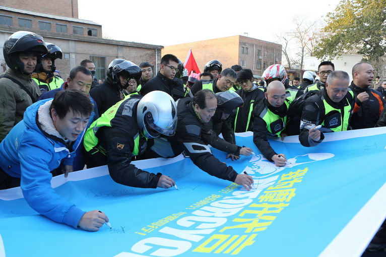騎行到藝術(shù)圣地798,進(jìn)行“我為摩托代言”簽名儀式。自由之旅第二季北京發(fā)車儀式到此完滿結(jié)束。