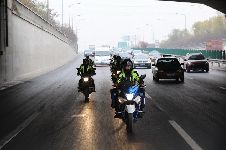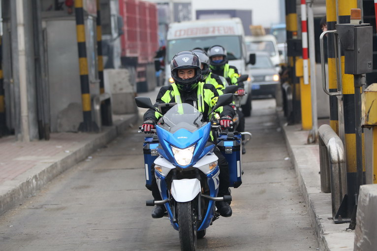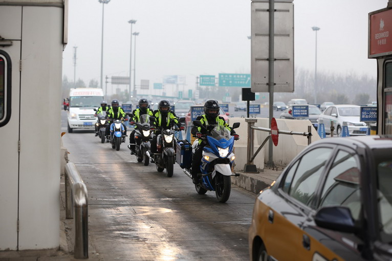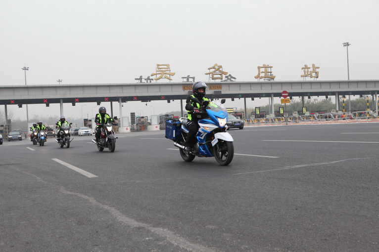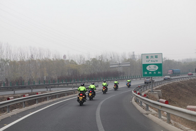早上9:30,隊(duì)員們來到了北京六環(huán)。北京環(huán)線高速的法規(guī)和收費(fèi)高速接近,路面上的限速標(biāo)識(shí),摩托車也要遵守。