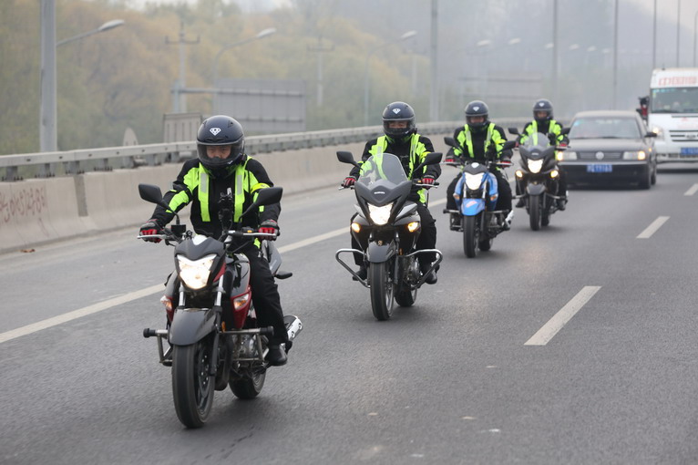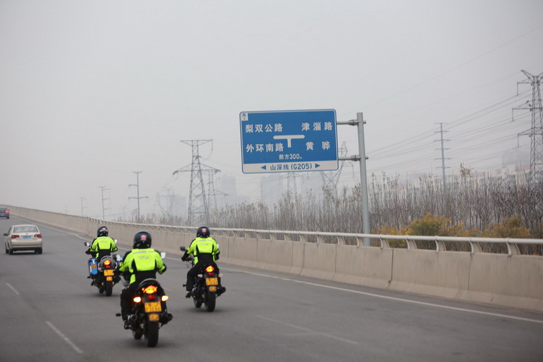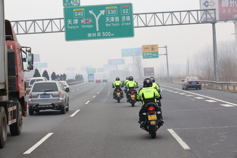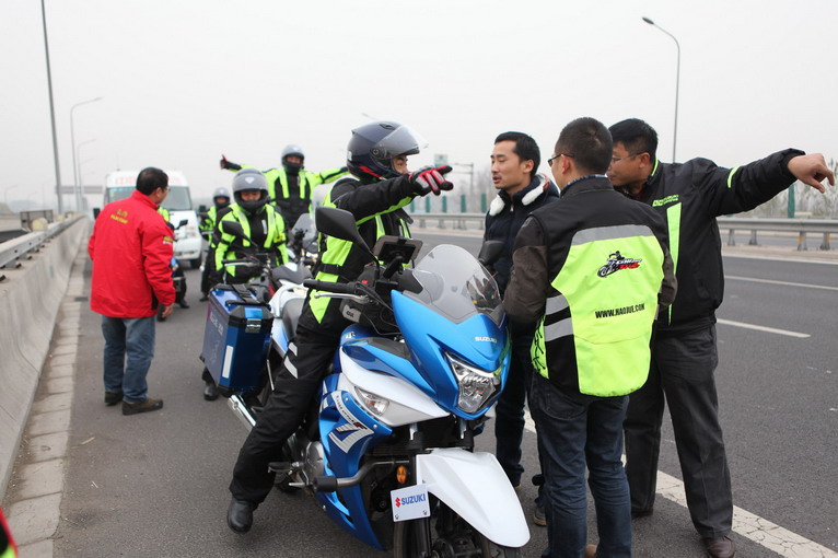 今天首都的灰霾還是有點(diǎn)大,車流量也不算少,一路上,無論是貨車、大客車、轎車,高速路上有序的摩托,也能和諧共處,事后隊(duì)員們都認(rèn)為開著GW250,足夠應(yīng)付高速路況,也比在國(guó)道上行駛更為安全。