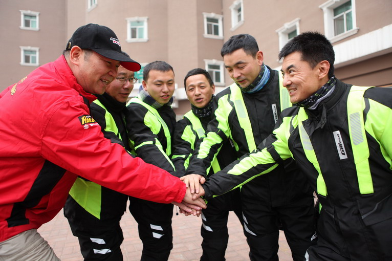 今天的氣溫依然接近0攝氏度,隊(duì)員們也趁機(jī)補(bǔ)充能量。由于全程都保持在60-80的法定限速保持隊(duì)形行駛,隊(duì)員們的體力消耗比單人跑高速更大。