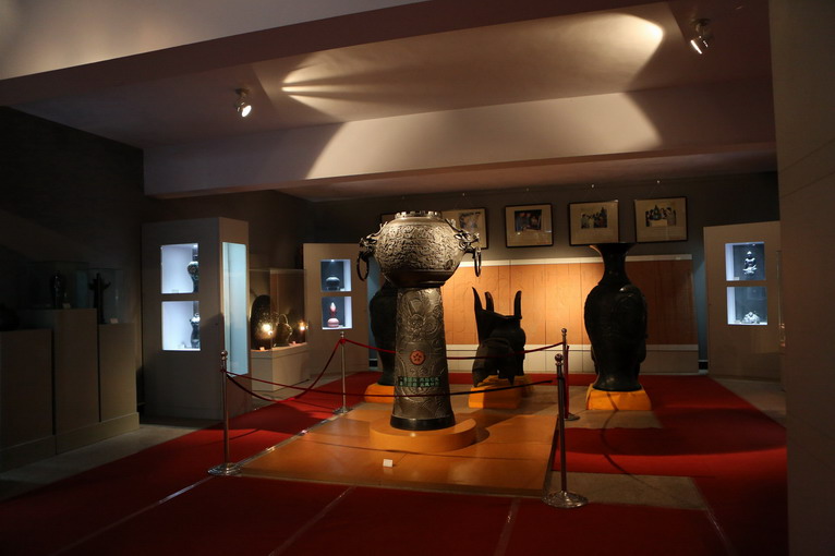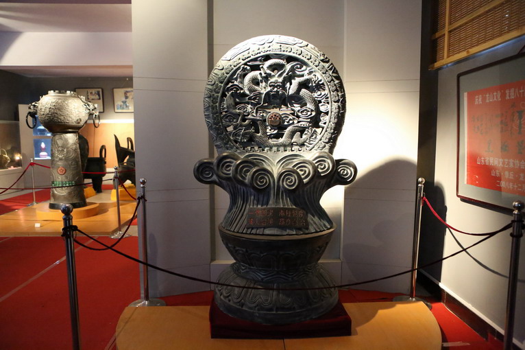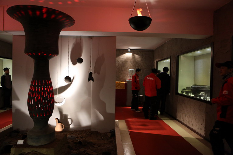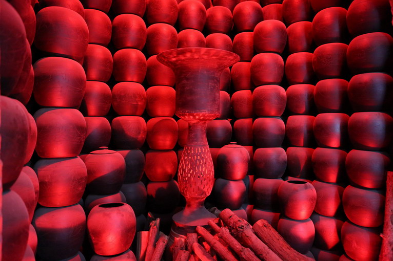 進(jìn)入博物館,首先看到的是一個(gè)模仿古代黑陶燒制的藝術(shù)裝置,正中的就是黑陶制品最著名的“蛋殼陶杯”放大復(fù)制品。