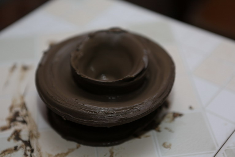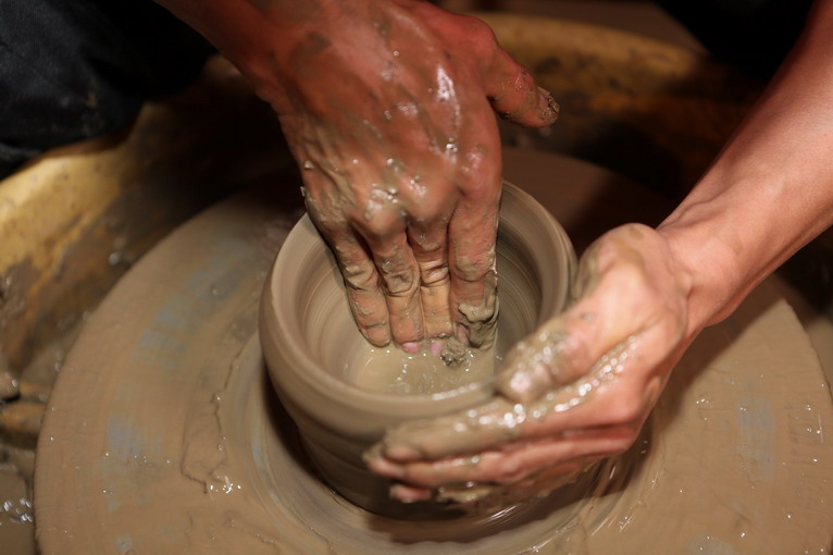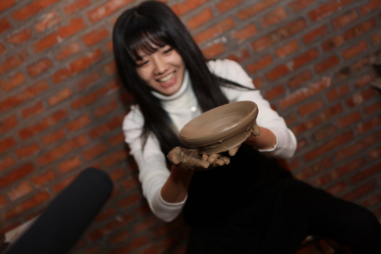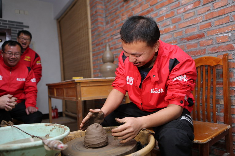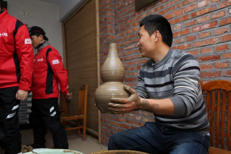 太神了,不到一分鐘的時(shí)間,隨著轉(zhuǎn)盤轉(zhuǎn)動(dòng),在師傅的巧手之下一個(gè)黑陶葫蘆形狀就出來了,大家七嘴八舌“沒有想象中難嘛”,“挺容易的嘛”,“我小時(shí)候玩過泥巴,有經(jīng)驗(yàn)!”。
