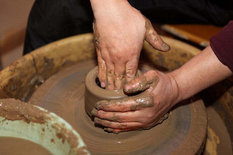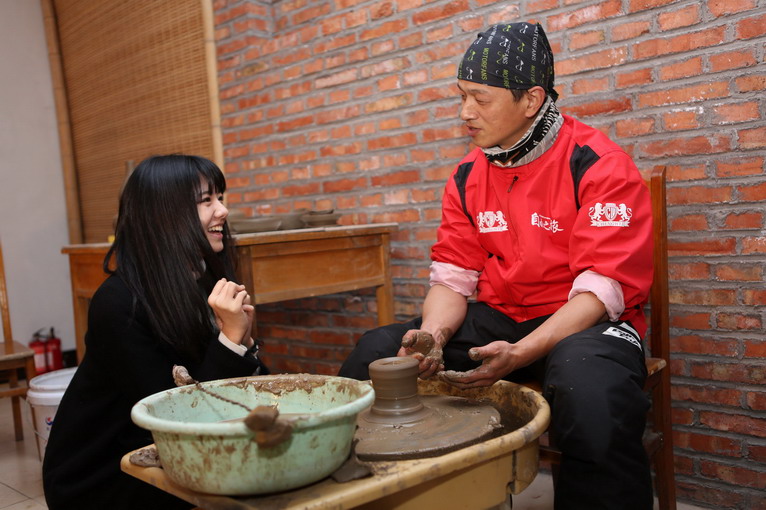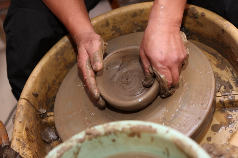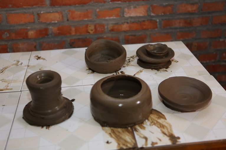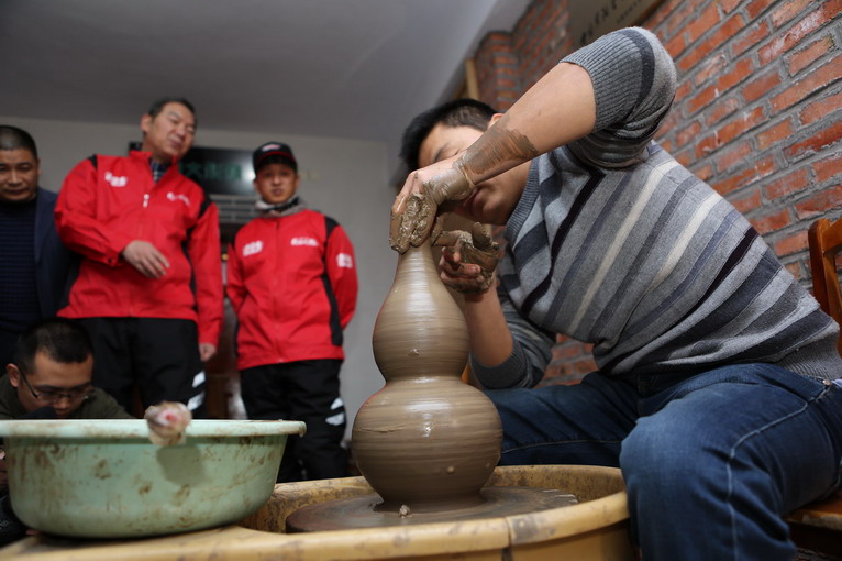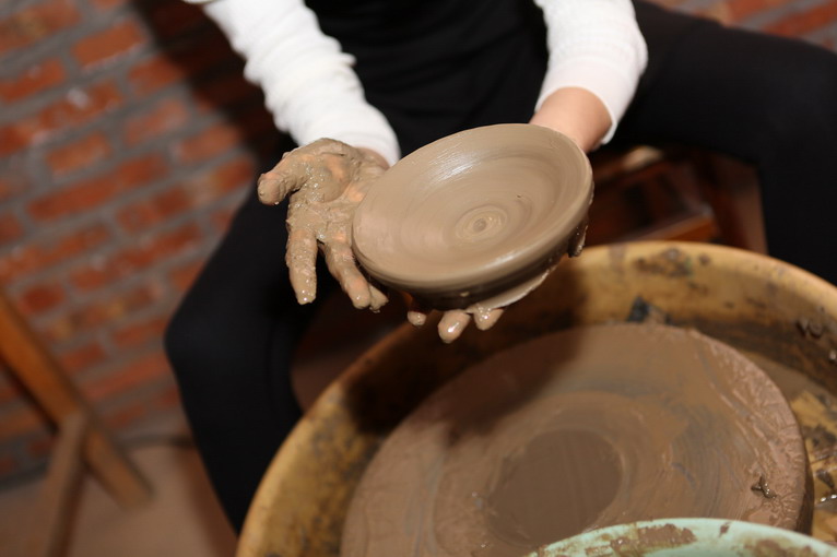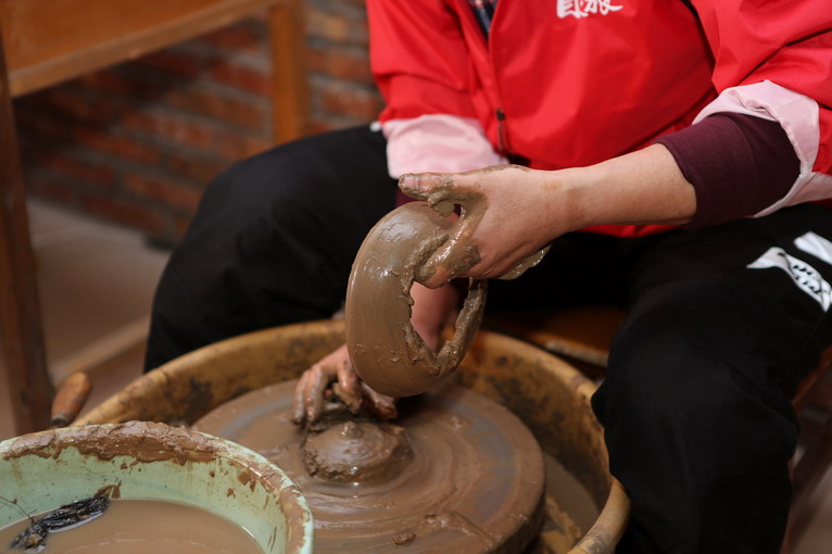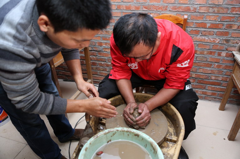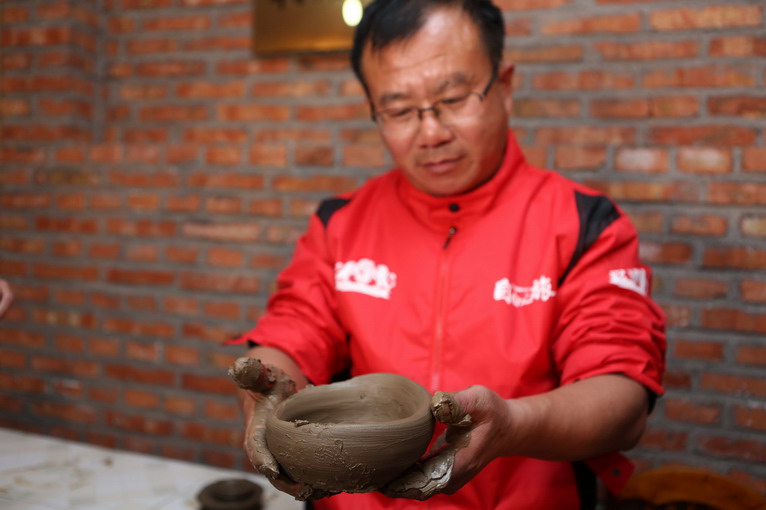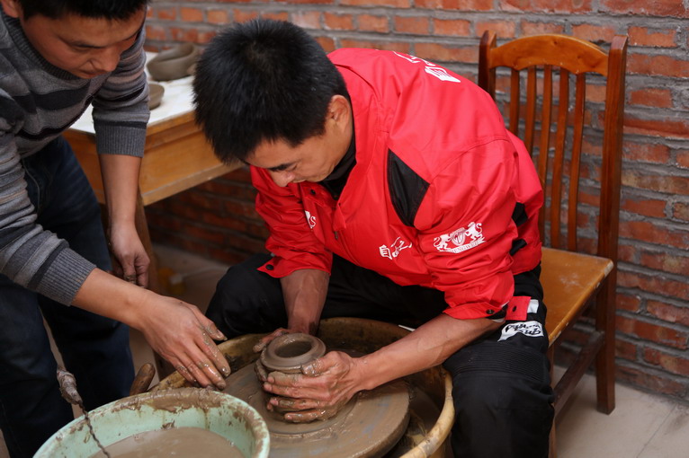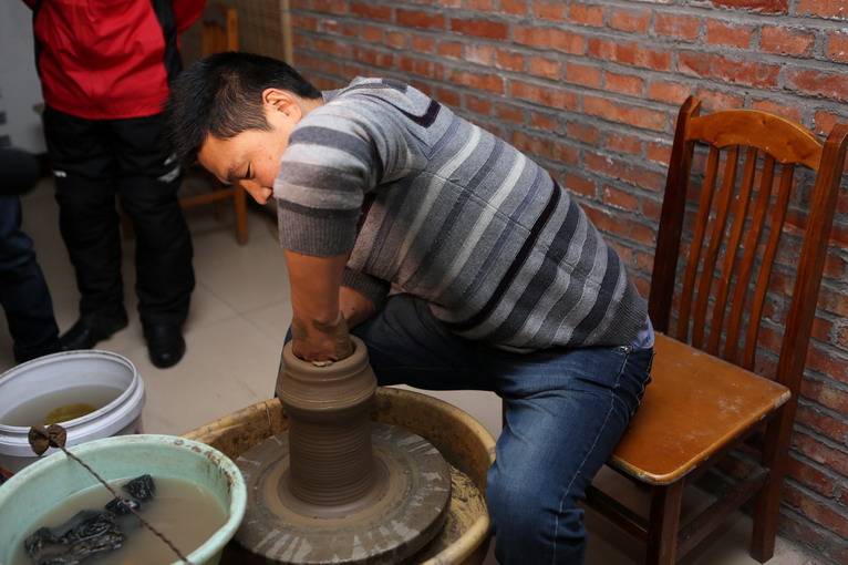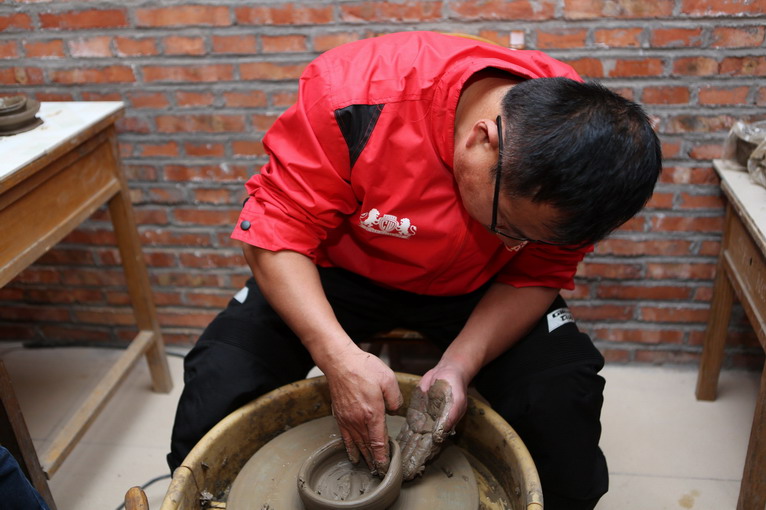 參觀過后,來到黑陶制作室,師傅為大家示范如何制作黑陶。