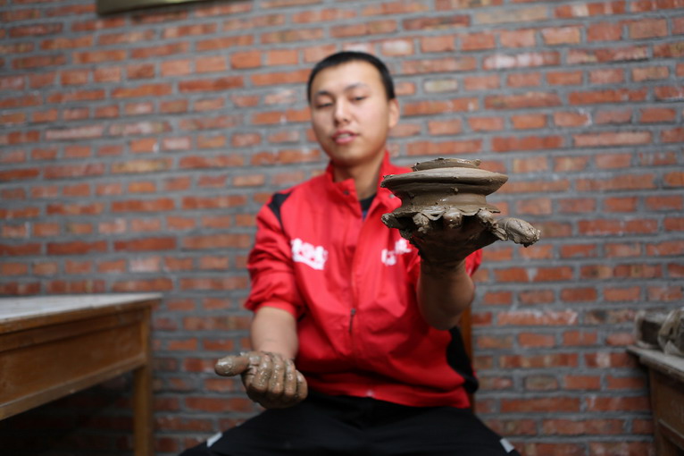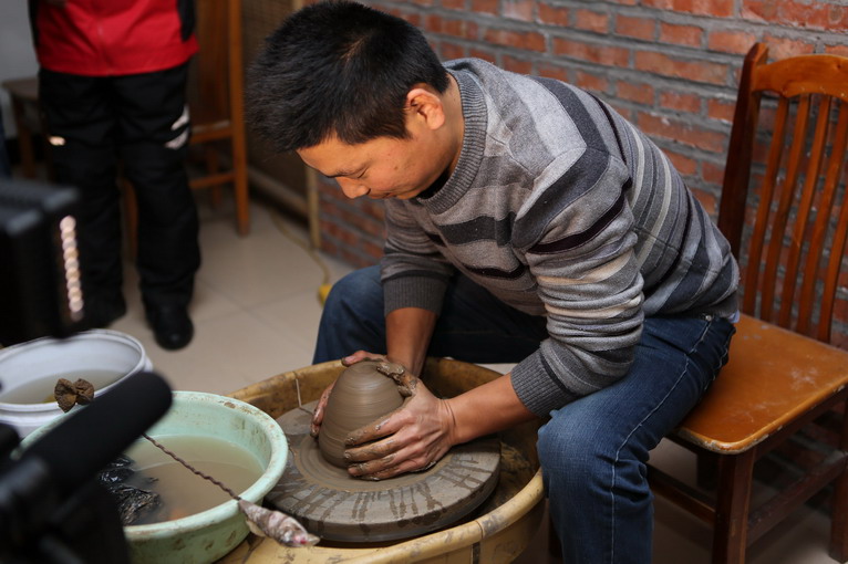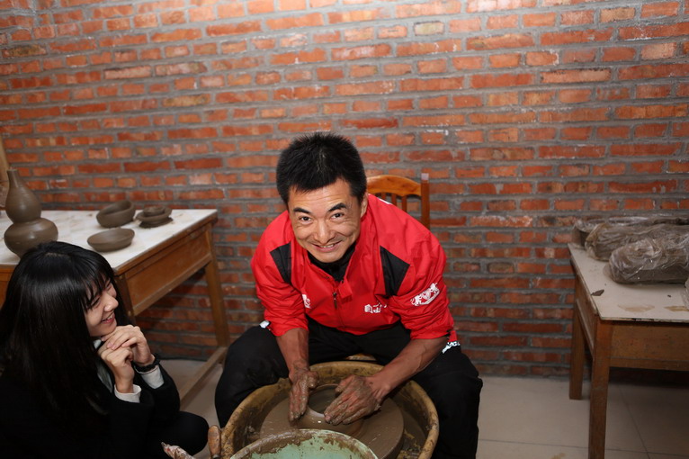 第一個(gè)上陣的是搖滾車手王成龍,據(jù)師傅指點(diǎn),做陶藝的核心,是心要靜,但這家伙玩的是激情澎湃的搖滾,能靜得下來么?