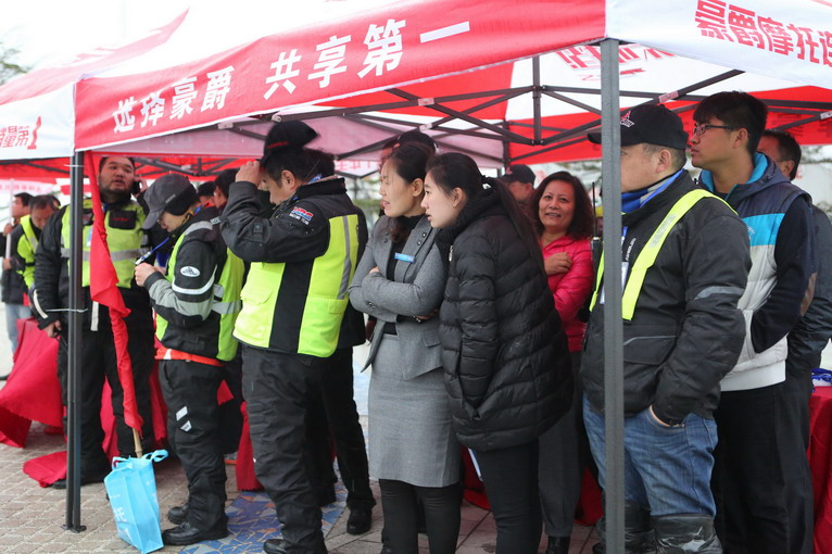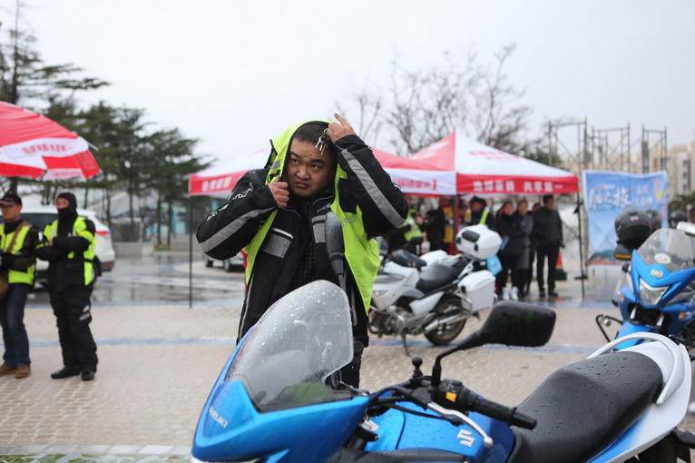 天公不作美,整個下午天空都是陰沉沉要下雨的樣子,海風(fēng)也非常大,自由之旅車隊的騎手們都擔(dān)心山東摩友能否順利到場,下午3時,離聚會活動開始還有一段時間,廣場上已經(jīng)聚集了不少摩友。