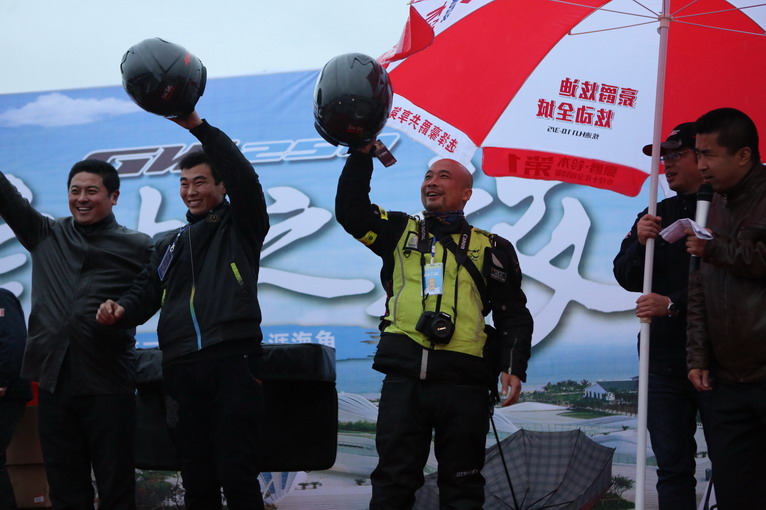 終極大獎,碳纖維頭盔。讓從海南摩旅回遼寧,經(jīng)過日照來參加活動的光頭哥和另外一位山東摩友獲得。