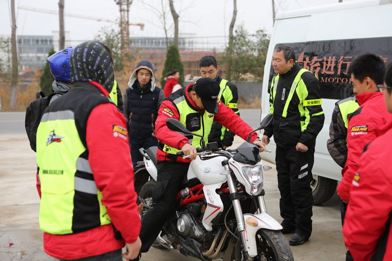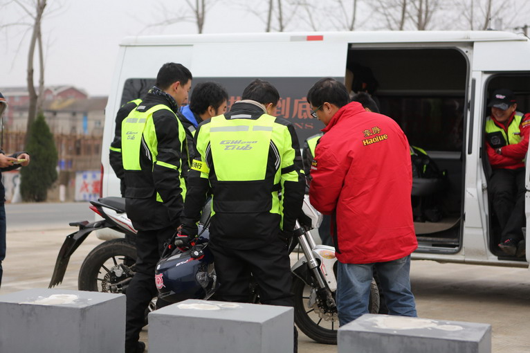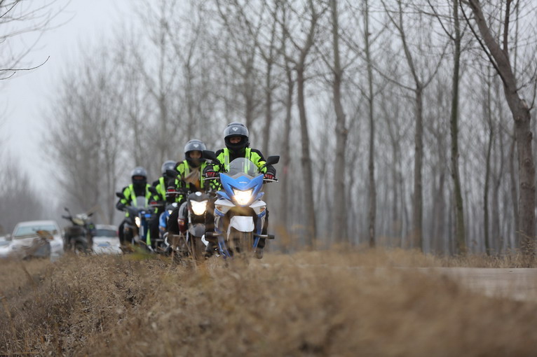 來到S236省道灌云縣附近,遇到了兩位慕名而來的車友。車友在一起,就有說不盡的話題,其中一位車友騎的是一款300排量的國(guó)產(chǎn)新款,隊(duì)員們都一起研究討論起來。