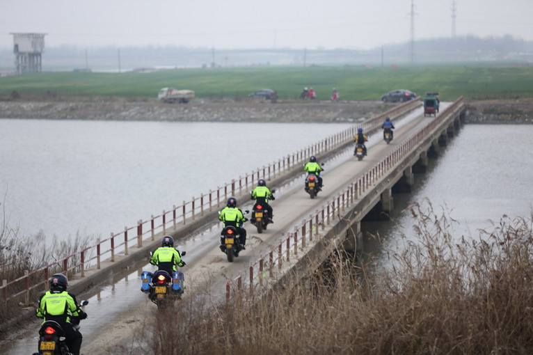 今天自由之旅車隊(duì)要離開山東,進(jìn)入江蘇,隊(duì)里的公益摩旅達(dá)人何衛(wèi)才(小男孩)正是江蘇人,在江蘇境內(nèi)就由他來騎行藍(lán)白色GW250F頭車,帶領(lǐng)大家領(lǐng)略江蘇淮河風(fēng)情。
