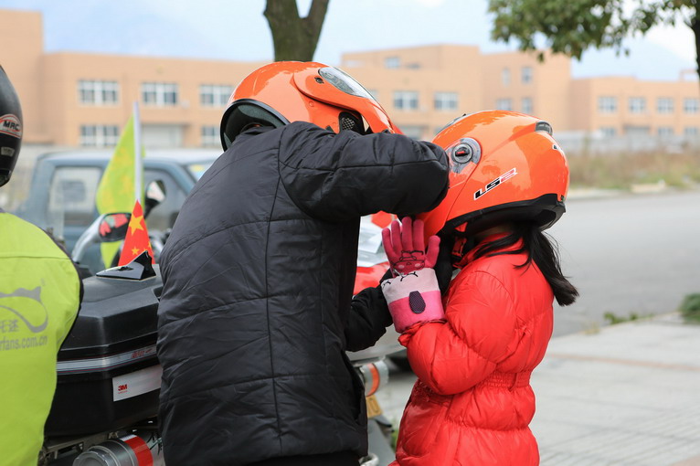 在店外遇到一位十分有安全意識的車友,給小朋友也佩戴上安全頭盔,而且還是跟自己同款的,好看又安全。贊一個!