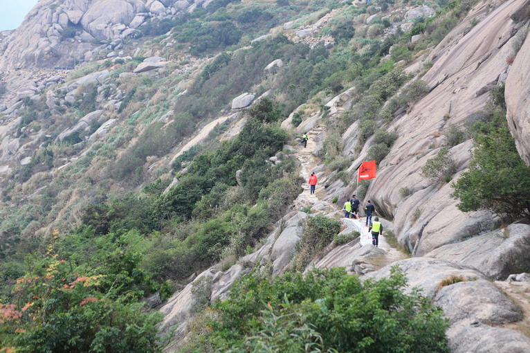 沿著海岸線的盆山公路,迎著海風(fēng)和海浪的波濤,向山頂進(jìn)發(fā)。