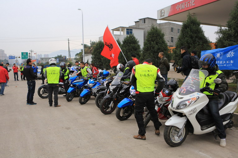 到達(dá)加油站,會晤連江火狼機車俱樂部車友。