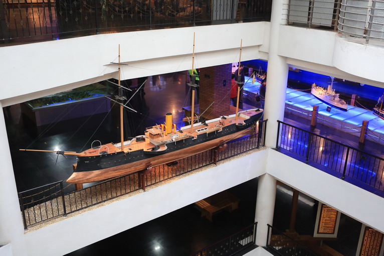 船政生產(chǎn)的中國第一艘木質(zhì)巡洋艦“楊武”號(hào)模型。1872年4月23日下水,1874年臺(tái)灣事件爆發(fā),對(duì)陣日本侵臺(tái)艦隊(duì),1884年馬江海戰(zhàn)中被法國軍艦擊沉。