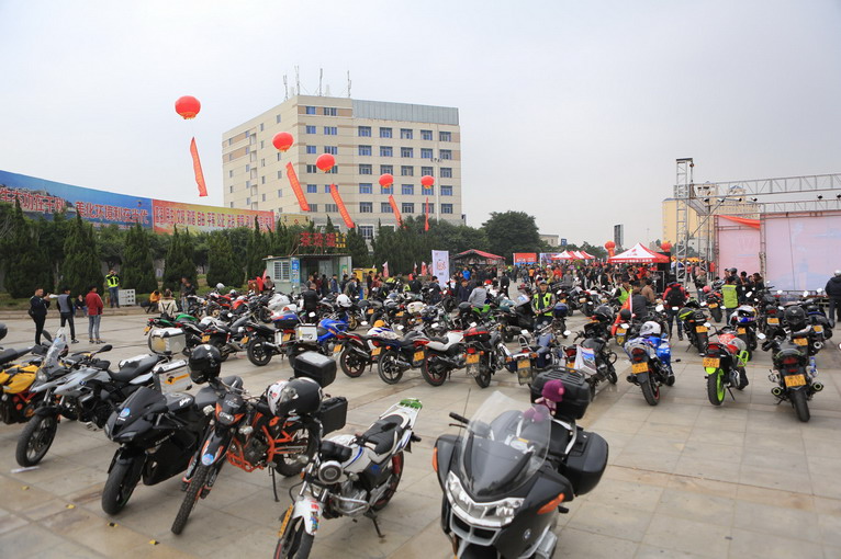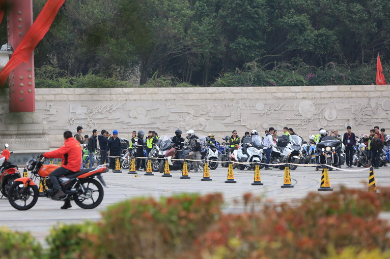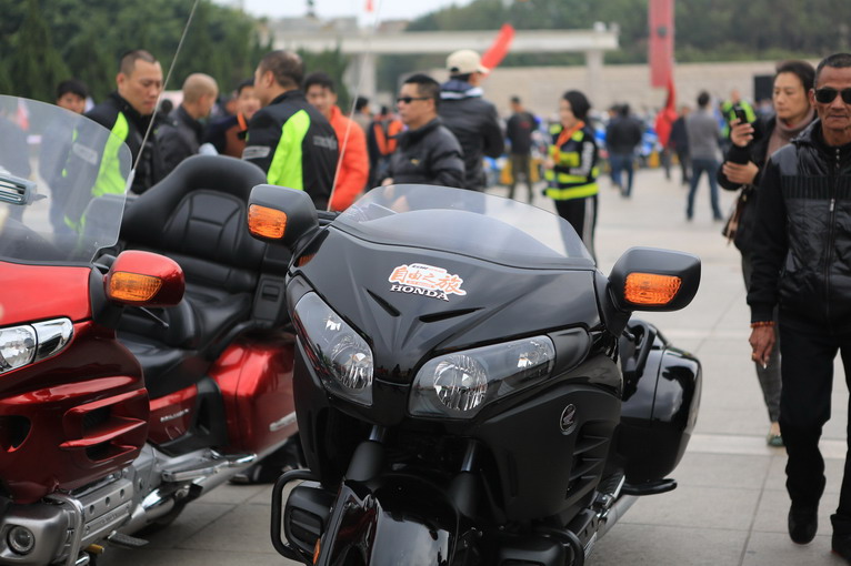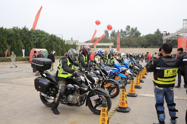 巡游完畢,車(chē)友們到達(dá)活動(dòng)會(huì)場(chǎng),充滿氣勢(shì)的二百多輛摩托吸引眾多圍觀群眾。