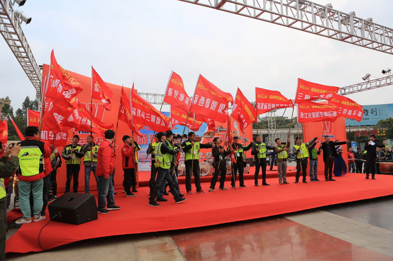 授旗儀式,為到場(chǎng)的20多個(gè)俱樂(lè)部授予紀(jì)念旗幟。福建的20多個(gè)俱樂(lè)部在自由之旅的號(hào)召之下來(lái)到崇武大會(huì)師,群雄聚首,盛況空前!臺(tái)下的車(chē)友都為自己的俱樂(lè)部上臺(tái)吶喊歡呼!