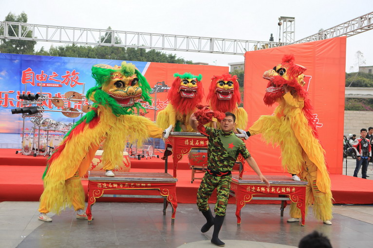 福建重大節(jié)慶常見(jiàn)的醒獅表演登場(chǎng),會(huì)師儀式正式開(kāi)始。