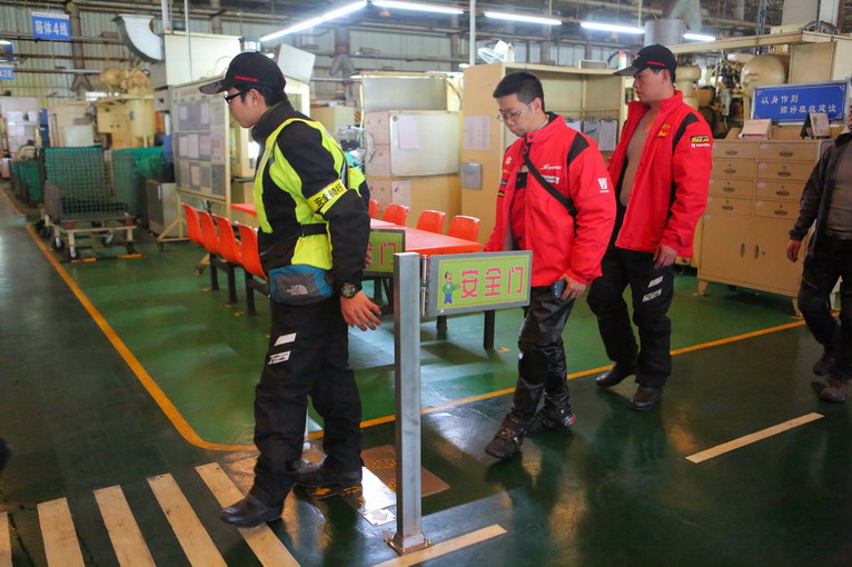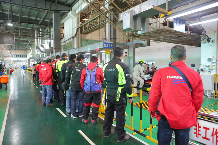 下午,大家集體參觀大長(zhǎng)江工廠。連平日神秘的生產(chǎn)車間,這次也特別對(duì)騎手們開放,雖然大家都是玩摩托車的高手,但親眼目睹發(fā)動(dòng)機(jī)制造、整車裝配、產(chǎn)品檢測(cè)等全過(guò)程,大部分人還是第一次。