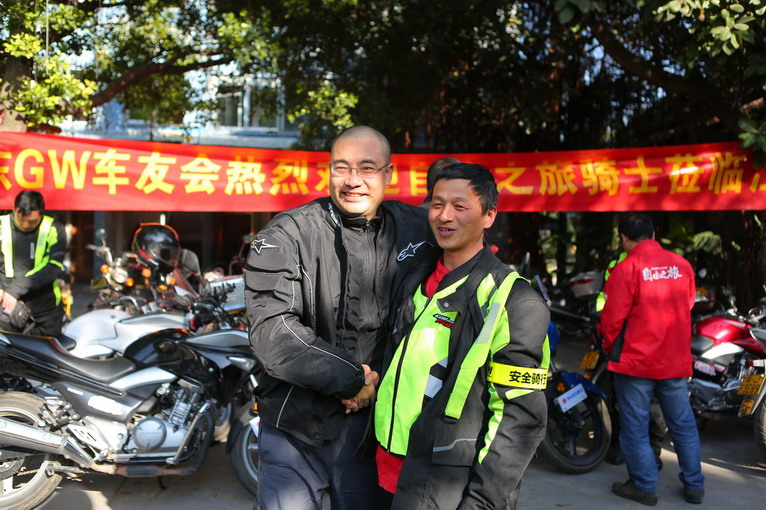 剛下高速不久,就遇到“廣東GW車友會(huì)”熱情的車迷在等候車隊(duì)。雖然大家都是初見(jiàn)面,但很多人在網(wǎng)上“神交”已久,“小男孩”何衛(wèi)財(cái)就遇到了一位粉絲。
