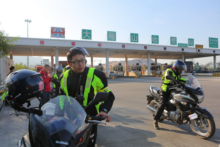經(jīng)過(guò)1個(gè)多小時(shí)的騎行,車隊(duì)在鶴山大雁山出口下高速,又一次安全、暢快的上了高速,大家都很興奮。