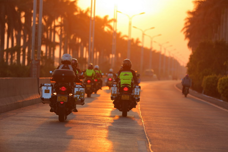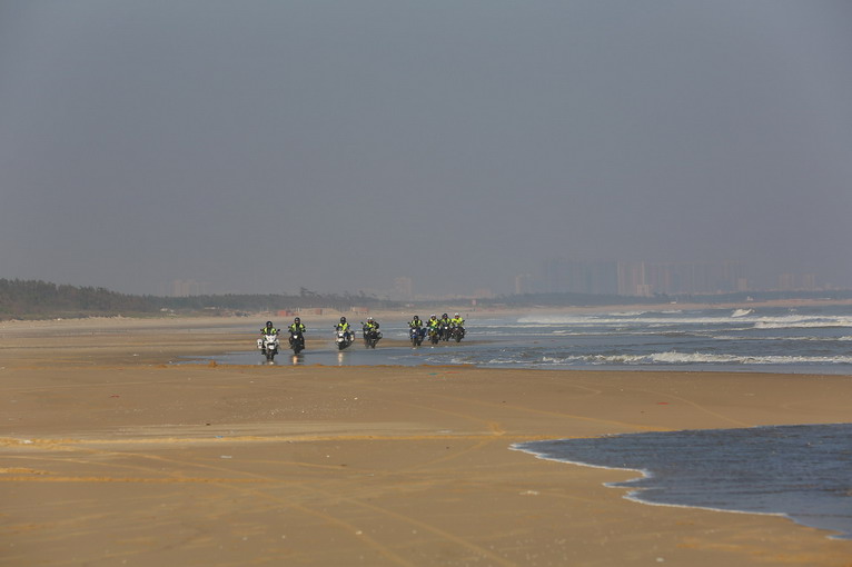 夕陽西下,結(jié)束完滿的一天,明天車隊(duì)將橫渡瓊州海峽,進(jìn)入海南島。