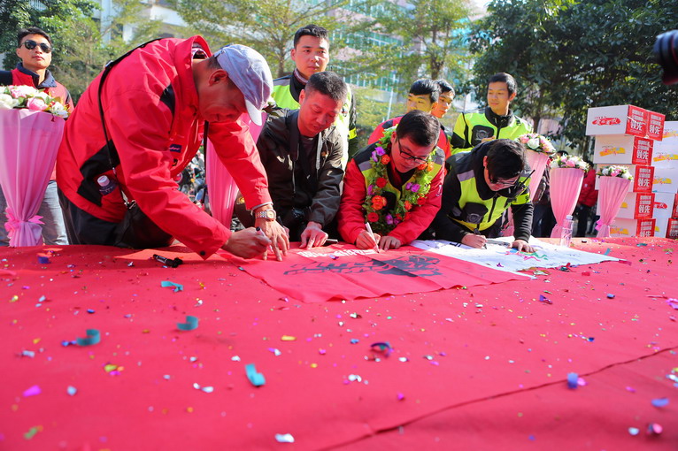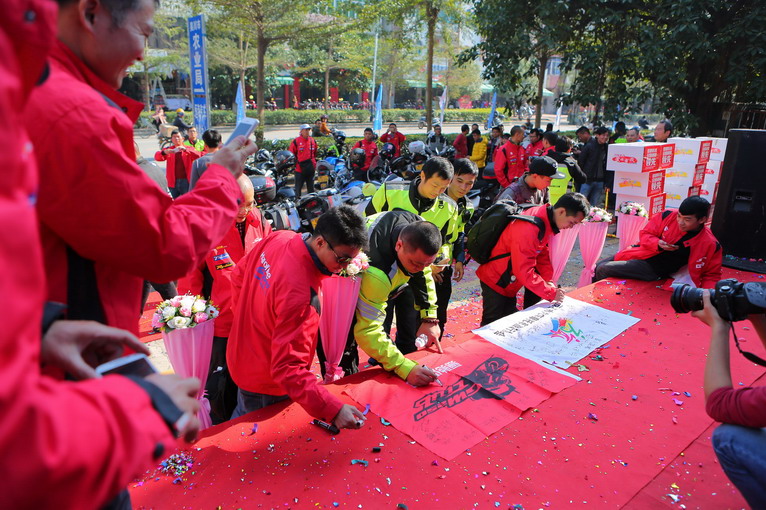 途徑茂名電白陳村鎮(zhèn),當(dāng)?shù)財(cái)?shù)十名車迷在鎮(zhèn)政府門前歡迎自由之旅車隊(duì),讓隊(duì)員們受寵若驚,在政府門前的車隊(duì)陣勢,吸引過路車輛和周邊市民圍觀,造成交通堵塞,在這里給說聲對不起啦。